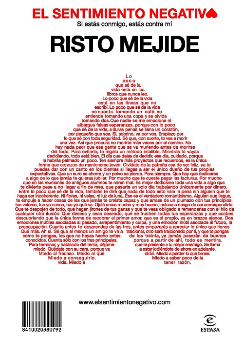 Un año y algunos meses después de irrumpir en el mercado editorial con El pensamiento negativo, Risto Mejide, el controvertido publicista, columnista, jurado de Operación Triunfo y productor discográfico publica una nueva entrega de sus reflexiones sobre el mundo que le rodea.