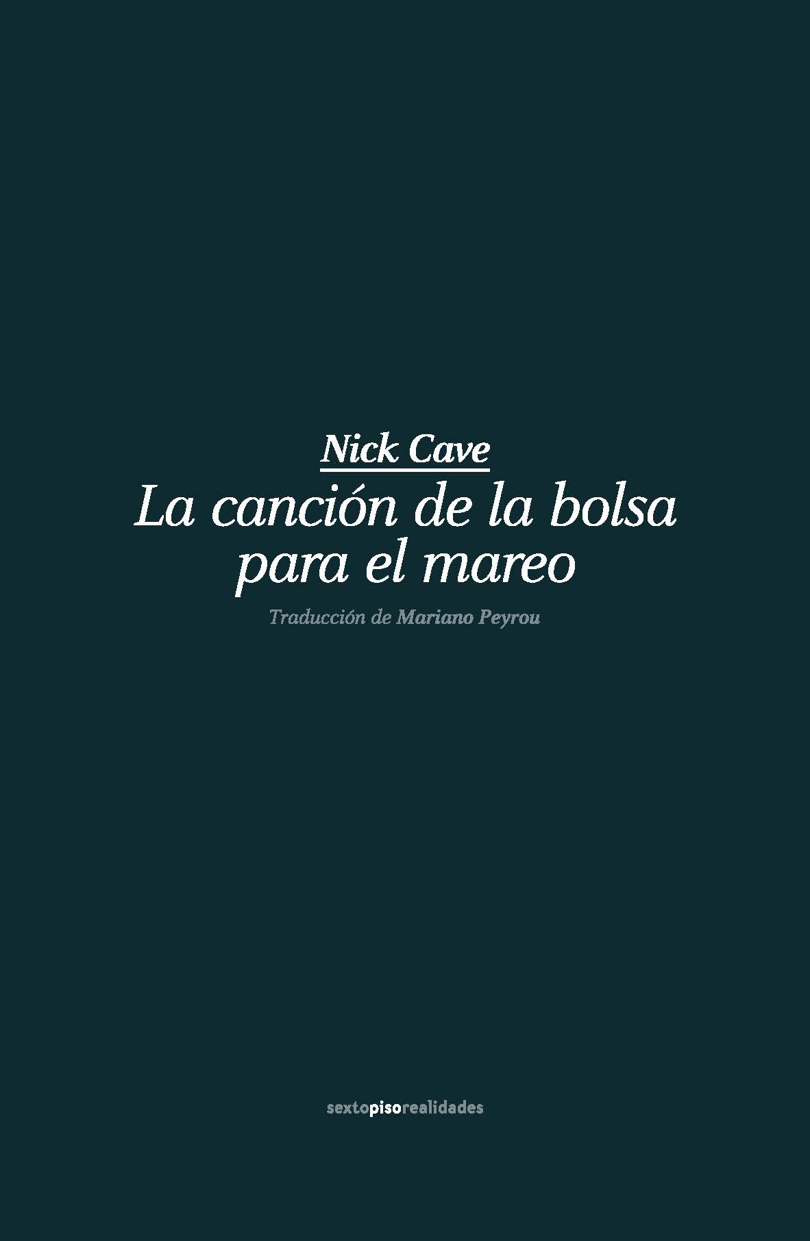Tomando como pretexto una gira realizada con su grupo The Bad Seeds, Nick Cave ha creado un libro de impresiones, recuerdos, poemas, letras de canciones, reflexiones sobre su filosofía de la composición, así como los temores y miedos más íntimos, que lo desnudan como un ser humano cuya fragilidad interna es volcada de manera artística con una sensibilidad y una imaginación desbordadas, no carentes de humor. A través de una escritura tan lírica como íntima, Nick Cave se desdobla de manera continua entre sus respectivos roles como creador e intérprete. Entre aviones, autocares, hoteles y conciertos, La canción de la bolsa para el mareo es el testimonio alucinado de un viaje espiritual y sonoro por las distintas estaciones que componen ese fascinante enigma conocido como Nick Cave.