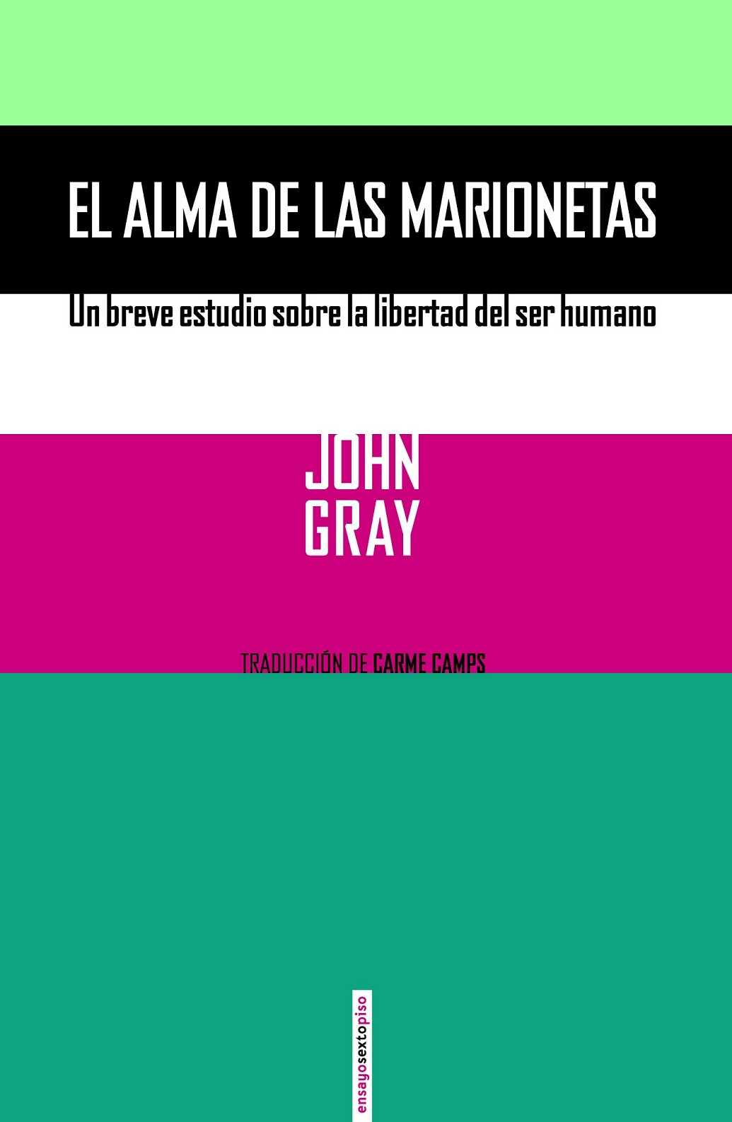 Gray asemeja la libertad humana a la libertad de las marionetas. En nuestro caso, el titiritero habita oculto en nuestra propia conciencia, y los hilos vienen dados por nuestra historia e ideas, pero nada implica que podamos evadirnos de los límites que constriñen y determinan nuestros actos en el mundo. John Gray observa que el anhelo sigue siendo liberar de una vez por todas al ser humano de sus ataduras, para dar comienzo a una nueva era de libertad humana y de plenitud. En cambio, en una magistral vuelta de tuerca, John Gray argumenta con lucidez casi lo contrario: justo ahí donde creemos liberarnos de las cadenas que nos atan, los seres humanos nos revelamos como simples marionetas incapaces de admitir las fronteras a las que irremediablemente nos constriñe nuestra condición.