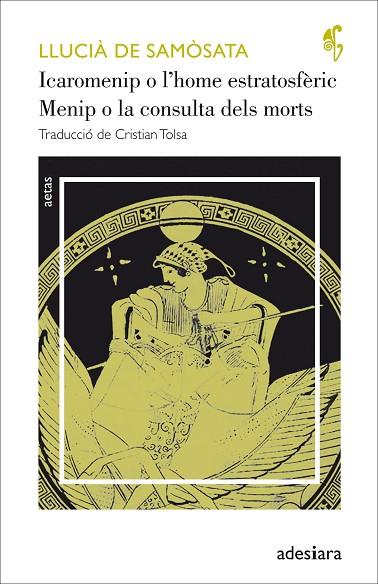 Menip de Gàdara, el filòsof cínic, atordit per la munió d’escoles filosòfiques que es contradiuen entre elles i fart de tanta vèrbola arrogant, decideix, d’una banda, pujar al cel per esbrinar —amb un socarrimat Empèdocles com a guia— l’estructura del cosmos i les causes dels fenòmens de la natura; i, de l’altra, baixar a l’Hades per preguntar a Tirèsias sobre la millor manera de viure. En els dos divertidíssims diàlegs que conformen aquest volum, Llucià ens fa veure, darrere la màscara de la paròdia, la crua realitat de les accions dels homes, actors de pacotilla que fan el seu trist paper en el teatre de la vida sense tenir en compte que la mort ens iguala a t