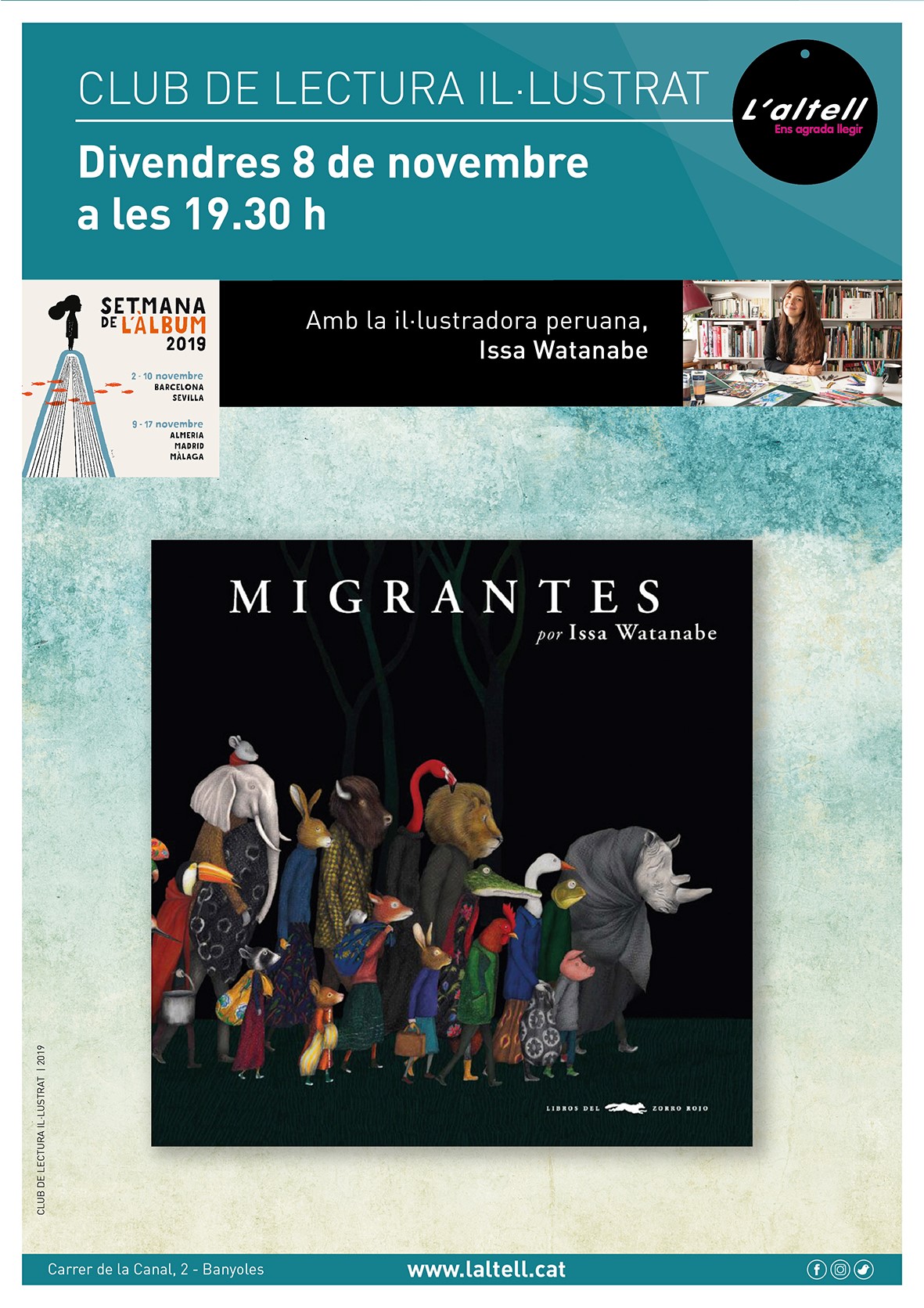 per aquest divendres tenim el luxe d'anunciar-vos que la il·lustradora peruana, Issa Watanabe ens visitarà a L'altell. Compartirà amb tots vosaltres l'àlbum "Migrants" una meravella que talla la respiració.