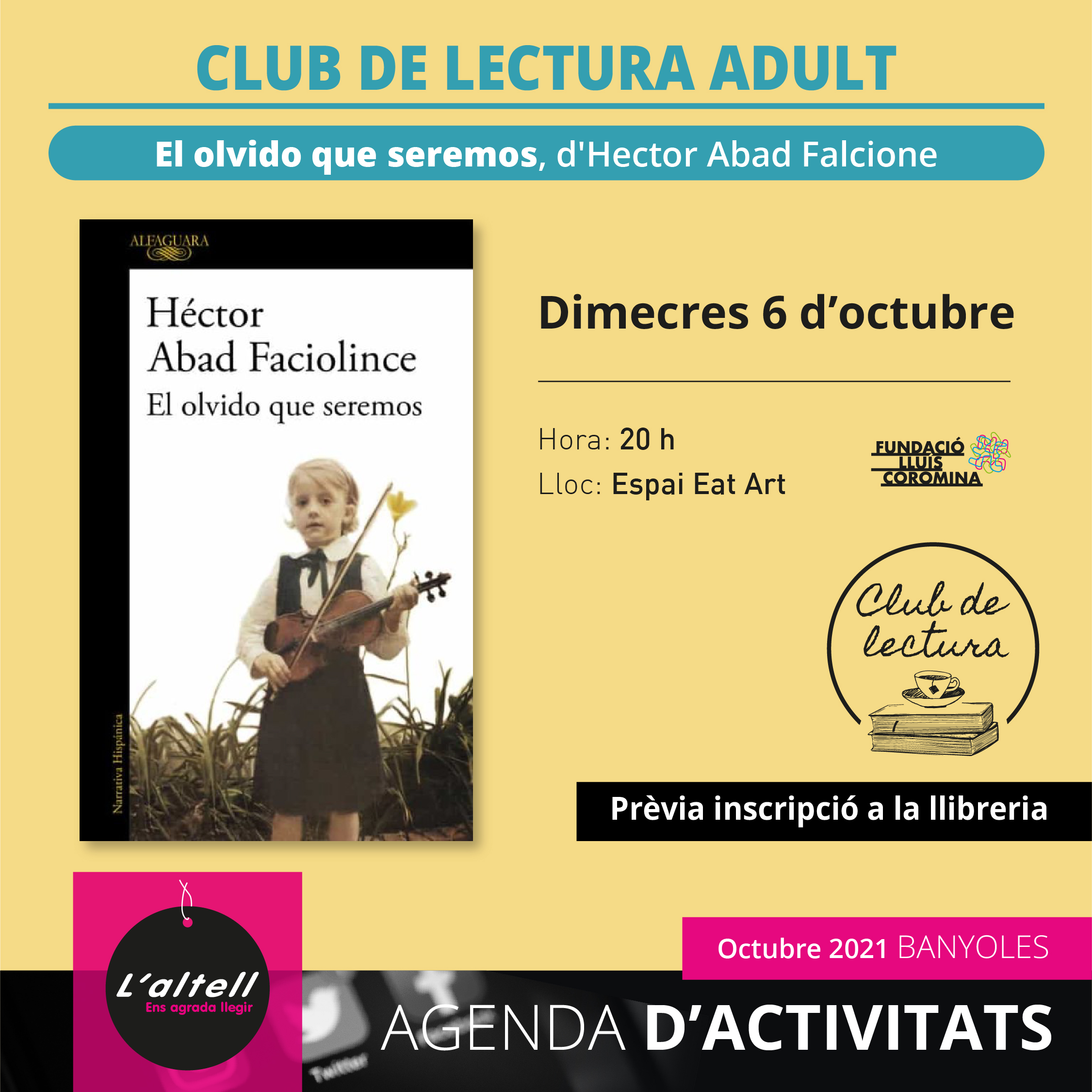Aquest mes d'octubre comentarem el llibre El Olvido que seremos, d'Héctor Abad Falcione. Editat per Alfaguara: