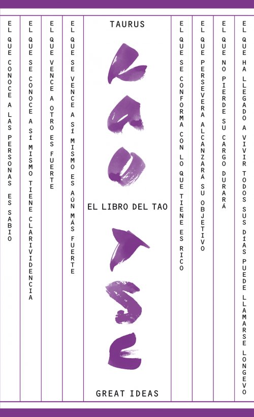 Obra fundamental para la religión y la filosofía chinas, El libro del Tao es una sencilla guía de la virtud que incita a la paz, el entendimiento y la humildad. Ofrece desde consejos políticos a recomendaciones de sabiduría popular y ha servido de inspiración a artistas a través de los tiempos y por todo el mundo. GREAT IDEAS A lo largo de la historia, algunos libros han cambiado el mundo. Han transformado la manera en que nos vemos a nosotros mismos y a los demás. Han inspirado el debate, la discordia, la guerra y la revolución. Han iluminado, indignado, provocado y consolado. Han enriquecido vidas, y también las han destruido. Taurus publica las obras de los grandes pensadores, pioneros, radicales y visionarios cuyas ideas sacudieron la civilización y nos impulsaron a ser quienes somos.