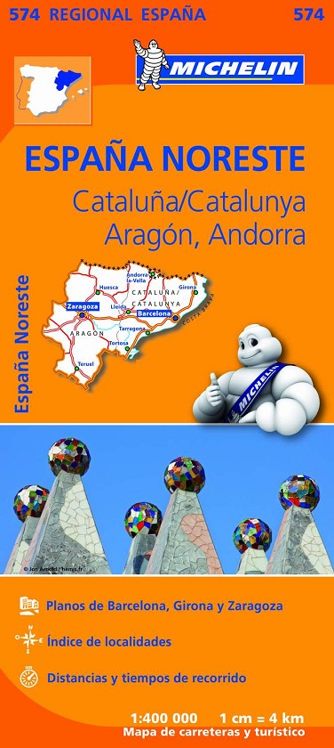 Los mapas de carreteras de la colección Regional resultan idóneos, gracias a su escala detallada, para atravesar y descubrir cualquier región. Su actualización anual y la gran diversidad de informaciones recogidas en la leyenda, con pictogramas de fácil comprensión, hacen de los mapas Regional el complemento idóneo para disfrutar de su viaje. La edición actualizada del Mapa Regional España Noreste Cataluña, Aragón, Andorra, editado a escala 1/400 000, incorpora un índice de localidades, cuadro de distancias y tiempos de recorrido entre ciudades, así como los planos de las ciudades de Barcelona, Girona y Zaragoza.