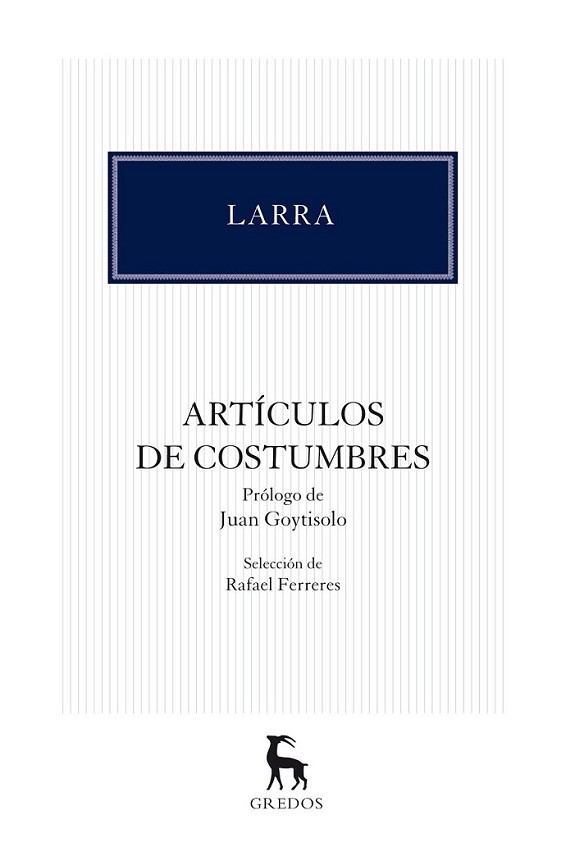 Paradigma del Romanticismo español más auténtico, Larra fue un agudísimo observador de la realidad que le rodeaba. Sus artículos de costumbres son ventanas abiertas a la España del siglo xix; sus comentarios políticos, dardos envenenados contra unas estructuras anquilosadas; sus textos de crítica literaria, acertados análisis repletos de propuestas e ideas para mejorar el panorama de las letras españolas y desligarse de la por entonces omnipresente influencia de la literatura francesa. Larra es hijo de su tiempo, pero también un escritor actual cuya influencia aún es palpable dos siglos después de su nacimiento. «La ironía de Larra ?burlona a trechos, y a trechos, amarga? es siempre extraordinariamente personal. Sus cuadros de costumbres, llenos de flechas emponzoñadas contra el patriotismo de los ?castellanos viejos? o la cerrazón de los facciosos partidarios de Don Carlos, figuran por derecho propio entre las obras más importantes de nuestra literatura». Juan Goytisolo