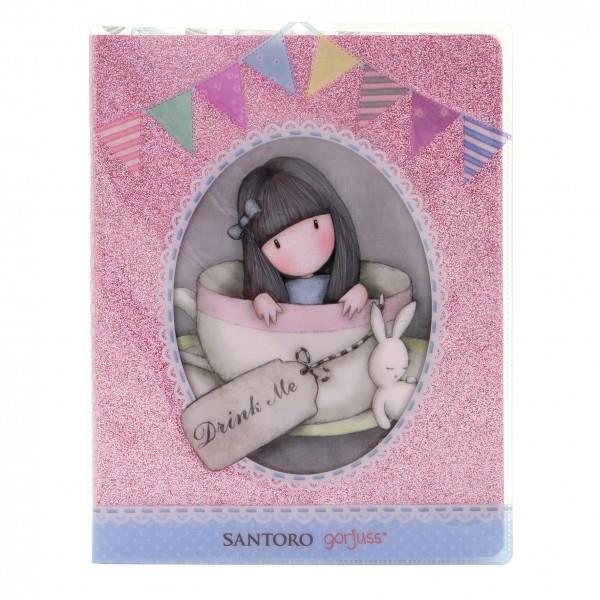 LLIBRETA PLASTIFICADA AMB PURPURINA. GORJUSS. DRINK ME