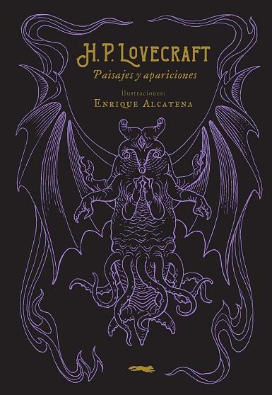 «Una aparición de ojos vidriosos, negra como la tinta, que iba casi a cuatro patas, cubierta por trozos de moho, hojas y ramas, forrada en sangre coagulada y que mostraba entre los dientes brillantes un terrible objeto cilíndrico blanco como la nieve, que terminaba en una mano diminuta.» H. P. L. En los relatos de H. P. Lovecraft, criaturas monstruosas o deformaciones se albergan en paisajes naturales y arquitectónicos. A menudo son lugares muy determinados, como los bosques de Nueva Inglaterra, la Antártida o el interior de casas antiguas de techos inclinados. Las apariciones de lo extraño y del horror pronto se enredan de forma inextricable con el entorno. Los monstruos ya célebres del imaginario Lovecraftiano contienen a Cthulhu y a los seres invocados por el Necronomicón, entre otros, desplegados a través un estilo narrativo laberíntico, envolvente, orlado por un romanticismo oscuro a la altura de Edgar Allan Poe. En esta selección —que puede concebirse como una secuela artística del Bestiario, publicado por Libros del Zorro Rojo— se unen esos paisajes con las apariciones, en un recorrido que abarca la mayoría de sus textos más célebres y otros menos conocidos, como «La casa maldita». Esta obra reúne pasajes memorables del imaginario de H. P. Lovecraft, iluminados por la poderosa visión artística de Enrique Alcatena, que amplifica y materializa con una paleta de colores pesadillescos lo que nunca debería ser visto.