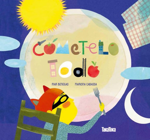«¡Cómetelo todo!» tiene que escuchar por enésima vez ante el plato de lentejas plantado delante de él en la mesa. De nada sirven sus negativas: «¡No me gusta! ¡No tengo hambre! ¡No puedo más!». Pero esta vez decide hacerles caso y, literalmente, comérselo TODO. A los peques les gusta tomar al pie de la letra a los mayores para llevarles la contraria o dejarlos en evidencia. Dejar volar la imaginación ante la inequívoca orden del «¡Cómetelo todo!» es una manera de abordar con humor e ironía esta fuente de eternos y repetidos conflictos. Un cuento sobre la eterna batalla de la comida, y la necesidad de medir mejor nuetras palabras y, sobre todo, nuestras órdenes. Las coloridas ilustraciones nos acompañan por un viaje imaginario donde el personaje se va comiendo todo lo que pilla a su paso, desde los cubiertos y la nevera, a las casas y los planetas. Los marcas de los mordiscos de cada escena permiten un juego de búsqueda y descubrimiento de los lugares visitados por nuestro niño hambriento.