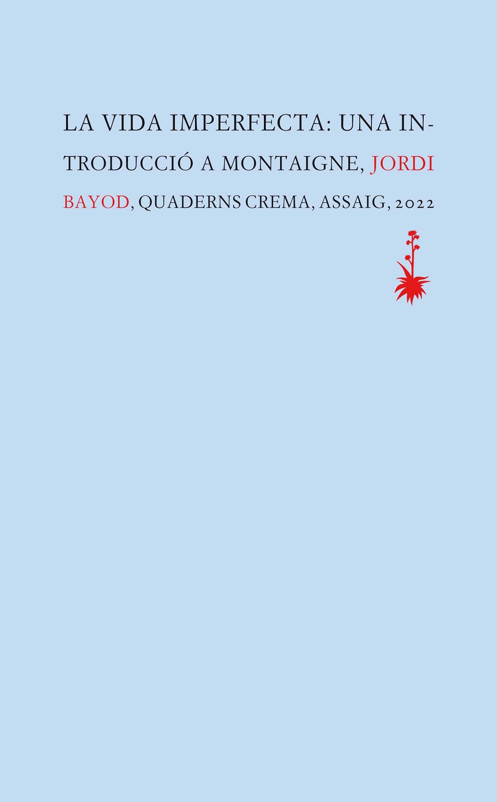 Desprès d’una joventut regida per l’hedonisme, Michel de Montaigne abandona el càrrec que exercia en el Parlament de Bordeus i es retira al seu castell per consagrar-se a la contemplació i a l’estudi. L’experiment, però, fracassa, i la soledat el precipita en una penosa malenconia. La seva obra mestra, els cèlebres Assaigs, és una resposta a aquest malestar: Montaigne no només hi desenvolupa una filosofia vital inspirada en la tradició clàssica, sinó que, en un exercici d’absoluta modernitat, fa de l’escriptura el mitjà per reconciliar-se amb si mateix i amb la vida en tota la seva imperfecció. Jordi Bayod, especialista en l’obra de Montaigne i autor d’una traducció de referència dels Assaigs en llengua castellana, explora en aquest llibre docte i clarificador la trajectòria vital i intel·lectual d’un escriptor que, a la cerca de la vida feliç, va ser capaç de conciliar les més nobles aspiracions de la humanitat amb la indefugible finitud de l’existència.