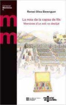 Traducción al catalán de las memorias que Remei Oliva escribió gracias a la insistencia de sus hijos, el mayor de los cuales nació en la Maternidad de Elna cuando sus padres fueron refugiados en el campo de Argelers. Gran parte del libro está dedicada a los dos primeros año del exilio. ¡Más de quince meses en campos de concentración! La explicación del día a día en los campos es muy intensa y se combina con reflexiones sobre la situaciones vividas. El libro va se acompaña de una información complementaria, que permite conocer mejor a Remei y reflexionar sobre la guerra y el exilio. Se adjuntan enlaces para visualizar y escuchar fragmentos de las conversaciones que el cineasta Quim Paredes grabó en diversos encuentros con Remei, así como su película 'El nostre llarg silenci', que recrea la experiencia que se narra en 'La noia de la capsa de fils'.