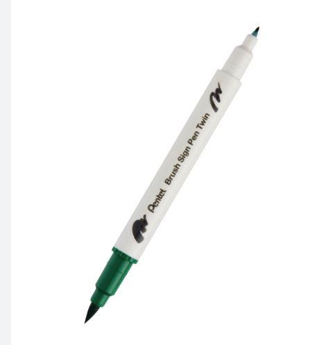 RETOLADOR CAL·LIGRÀFIC DOBLE PUNTA DE PINZELL PENTEL VERD FOSC