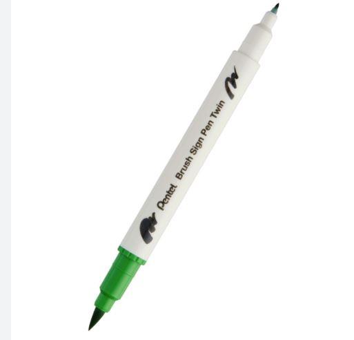 RETOLADOR CAL·LIGRÀFIC DOBLE PUNTA DE PINZELL PENTEL VERD CLAR