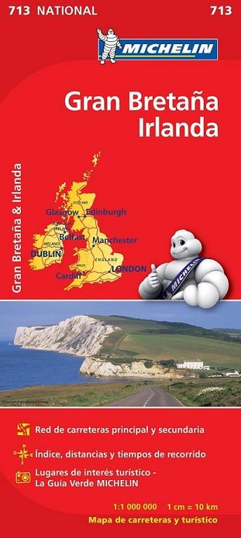 El Mapa National Gran Bretaña Irlanda, editado a escala 1/1 000 000 y actualizado en 2012, guarda además otros interesantes contenidos, tales como la red de carreteras principal y secundaria, índice de localidades, cuadro de distancias, tiempos de recorrido, y lugares e informaciones de interés turístico que han sido extraídos de La Guía Verde MICHELIN.
